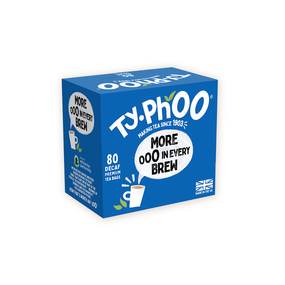 Discover the smooth, refreshing taste of Typhoo 80 Decaf Premium Tea Bags - a great everyday brew made with quality Kenyan tea. Rainforest Alliance Certified, every cup supports sustainable farming and a better future for tea-growing communities. Perfectly balanced for a comforting pick-me-up, it’s the classic cuppa you can count on daily.